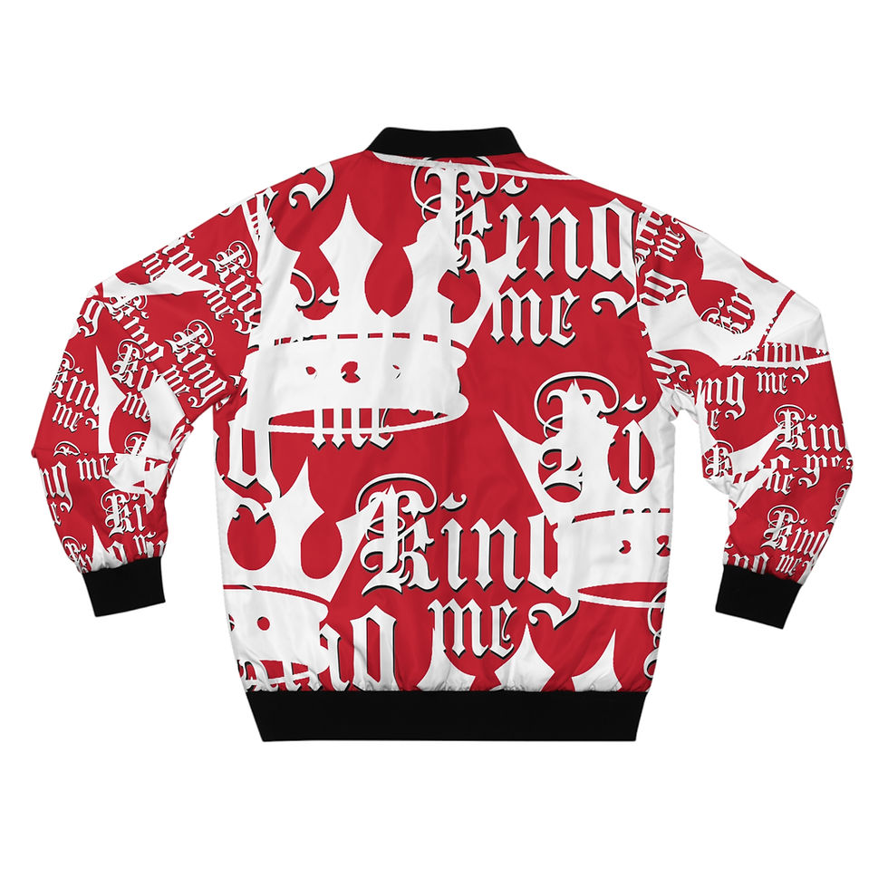 Unisex Bomber Jacket KING ME Black Candy Apple Red Custom VVE Design, Streetwear